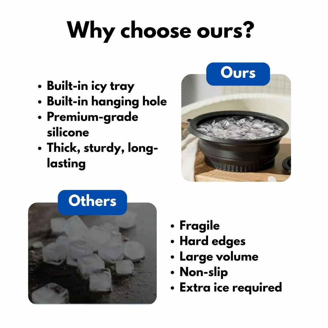Unlike bulky bowls, this collapsible silicone design folds flat for easy storage. Simply add ice + water, dip, relax, and glow — anytime, anywhere.