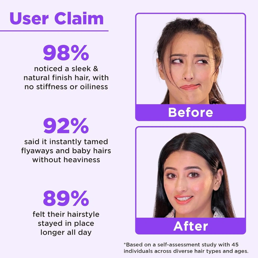 No stiffness, no white residue, no oily finish — just smooth, neat, natural-looking hair in seconds. Whether it's flyaways, baby hairs or frizz, this styling finishing wand keeps everything in place with a lightweight touch.